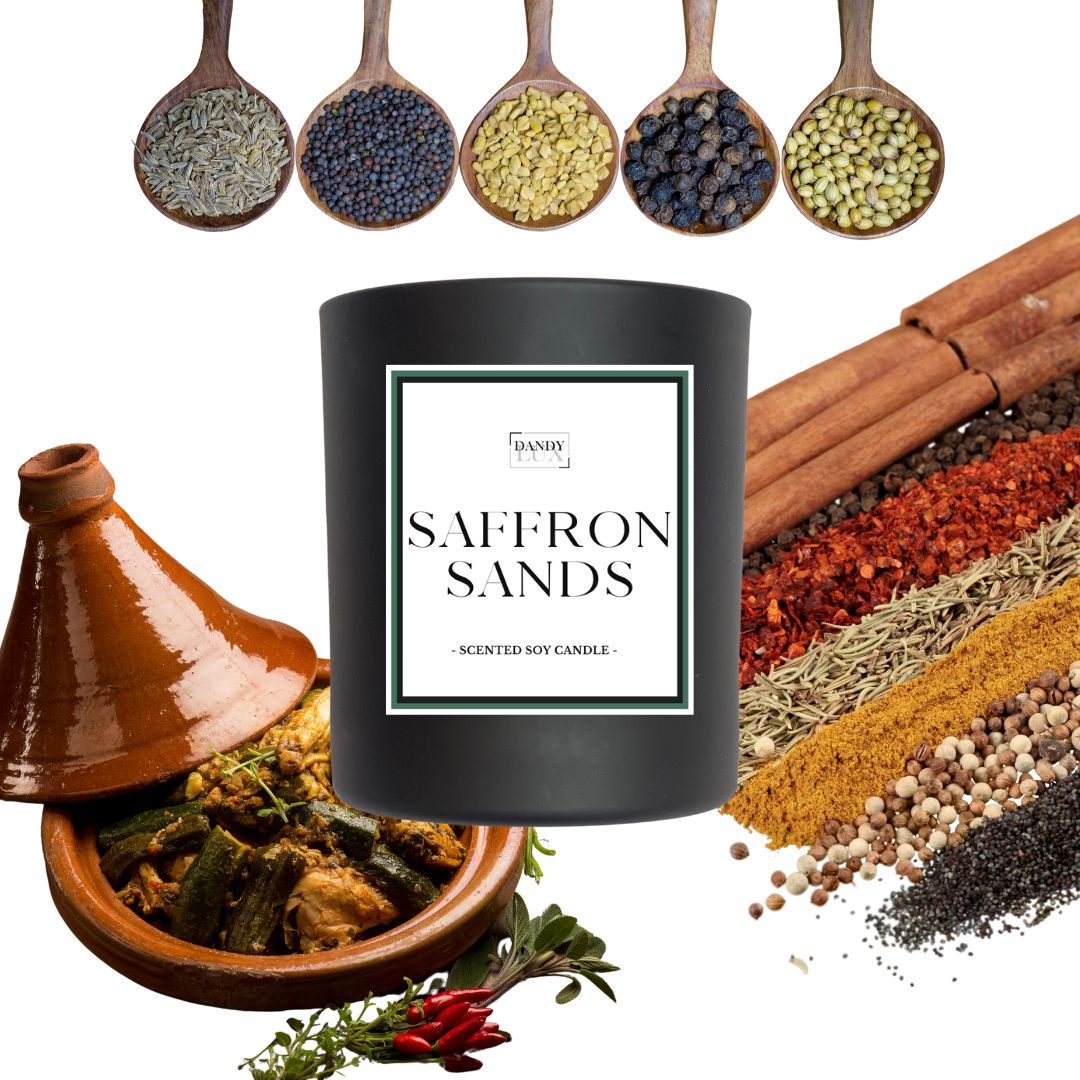 Transport yourself to the vibrant Bazaar with our Moroccan Spice scented candle. Inspired by the bustling markets, this fragrance captivates with top notes of orange and green hints, evoking the lively energy of the souks. As the candle burns, the base notes emerge, infusing the air with woody hints of incense, amber, rose, and spicy, strong musk, anchored by a touch of comforting vanilla.